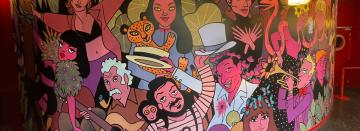 Avec la rénovation du hall se posait la question de refaire une fresque pour couvrir le mur rouge du hall, Mathias Malzieu, directeur artistique des Trois Baudets, en parle à Pénélope Bagieu, autrice / illustratrice, qui accepte assez rapidement le défi.